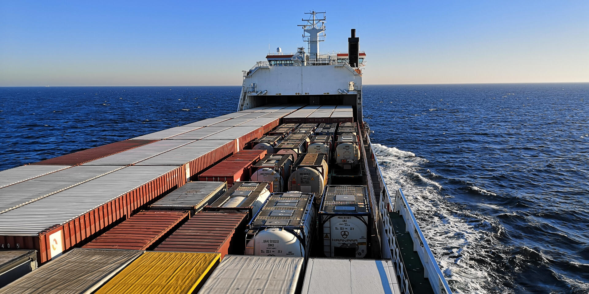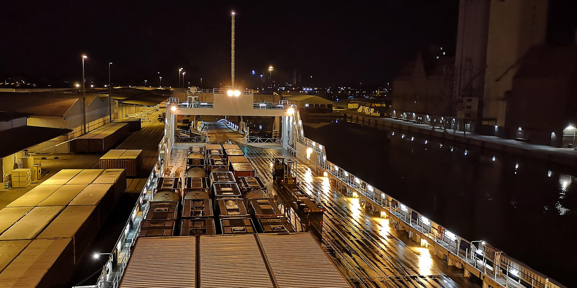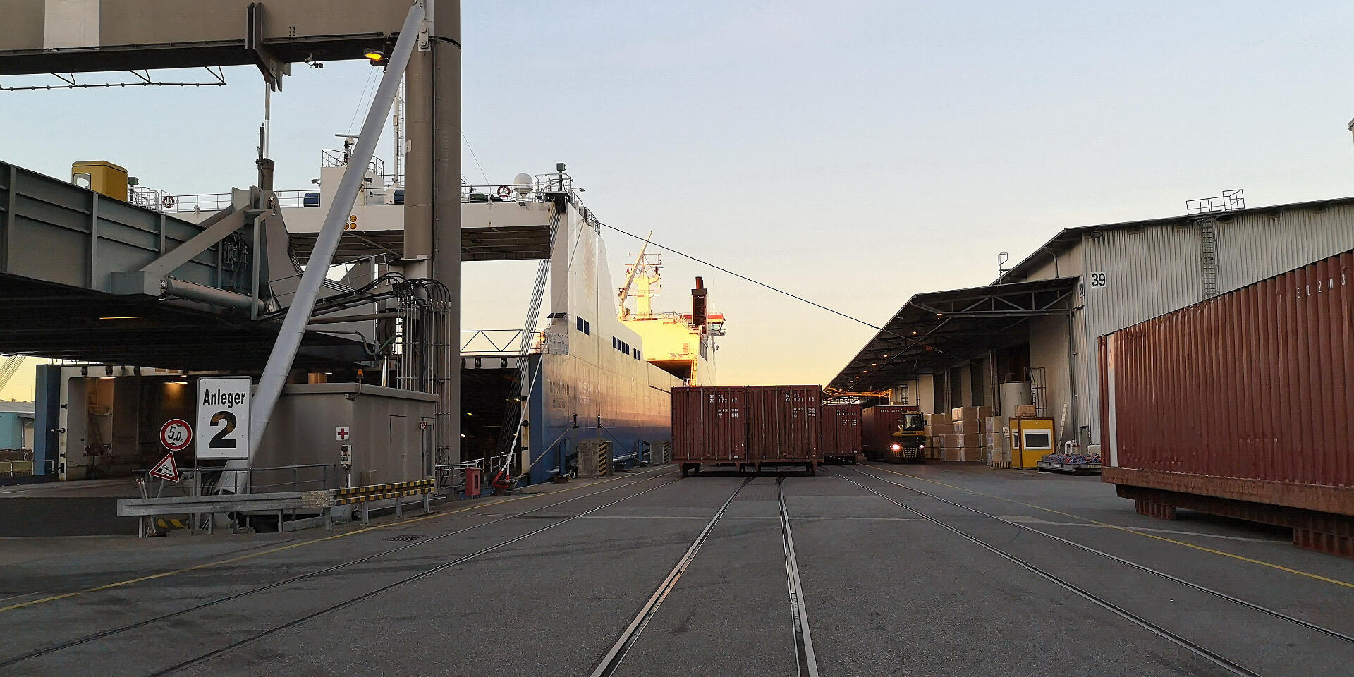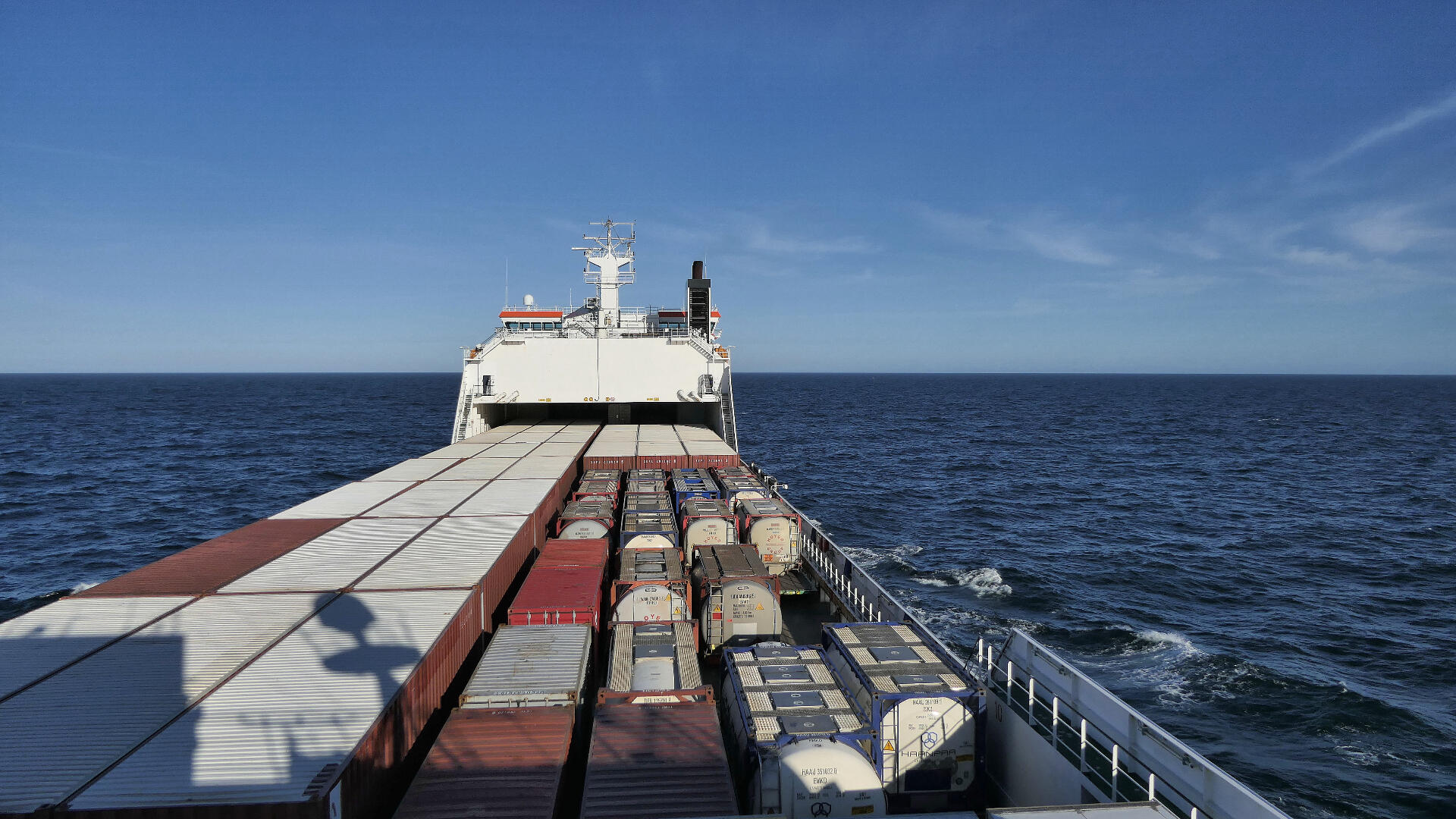 Ansonsten haben wir etwas Gefahrgut geladen und achtern stehen einige LKW-Hänger.