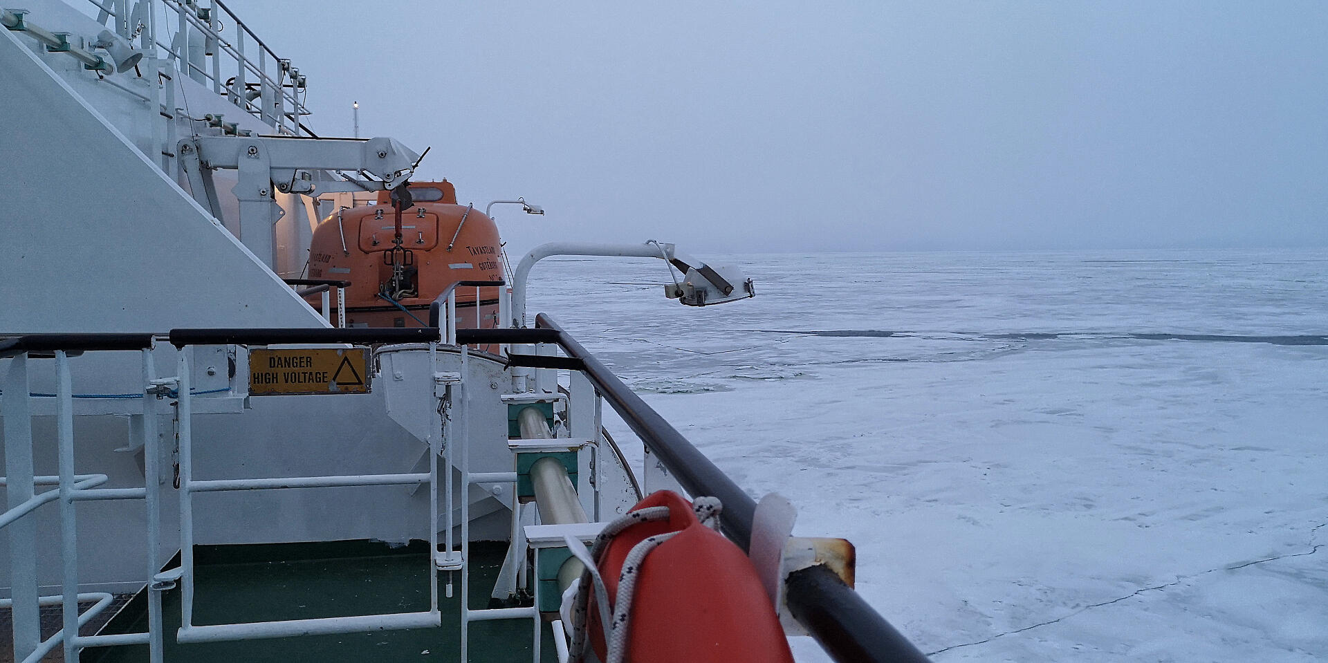 | 18.02.19 | 05.45 | . | Ostsee | Draussen fängt es an zu knirschen, der Geräuschpegel steigt. Die Tavastland hat jetzt die geschlossene Treibeisdecke erreicht | Dunkel | - 01 |