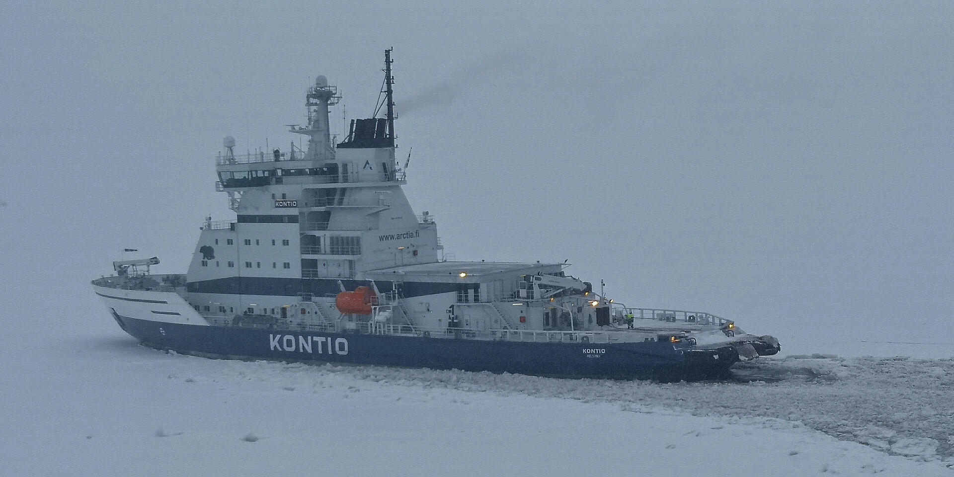 | . | 10.00 | . | . | Der Eisbrecher "Kontio" geht uns aus dem Weg. Draussen weiterhin ein eisiger Wind, leichtes Schneegrieseln, es wird schluepfrig an Deck - Vorsicht ist geboten | . | - 05 |