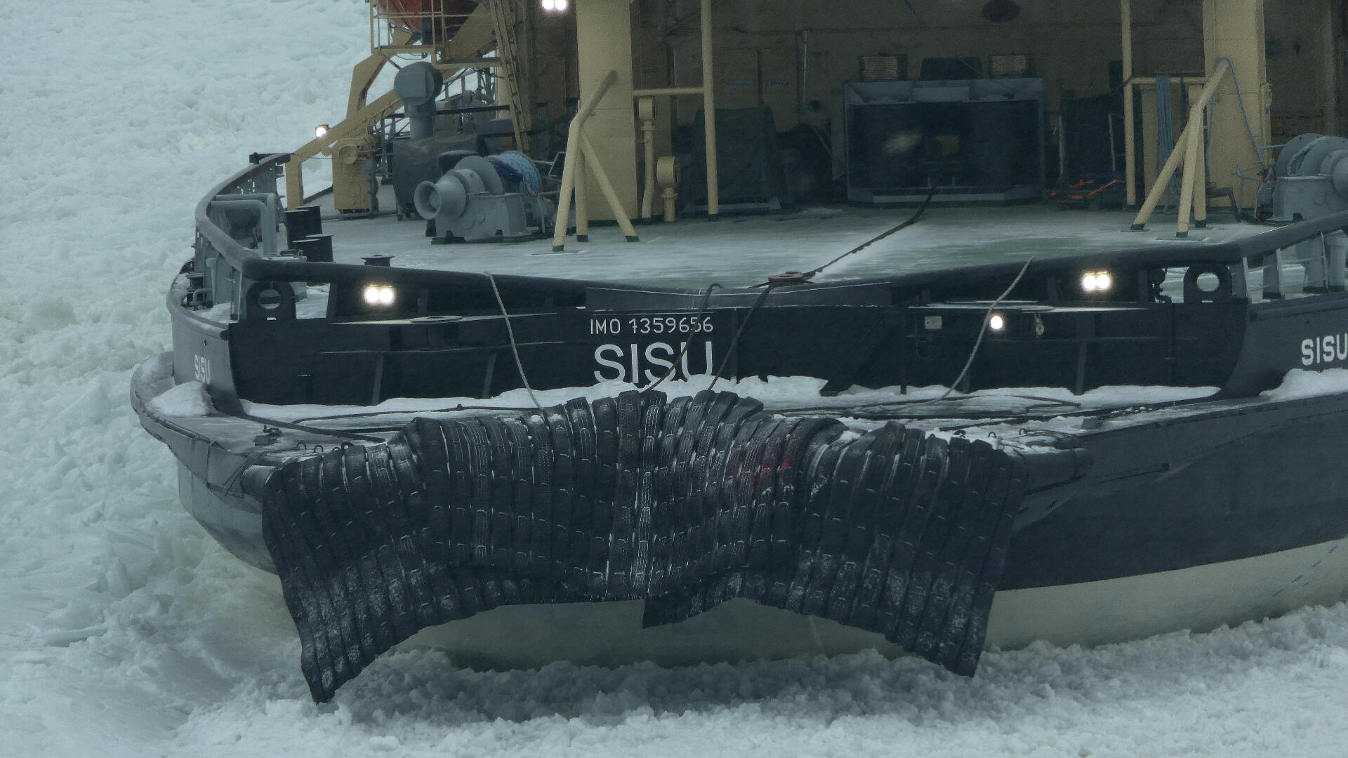 | . | 09.05 | . | . | Die "SISU" setzt sich vor uns und macht die Fahrrinne frei - anscheinend ein Novum auf dieser Tour, da die Tavastland fuer diese Eisstärke selbst ausreichend geruestet ist. Aber es gab eine diesbezuegliche Anweisung - also ist man folgsam... | . | - 05 |